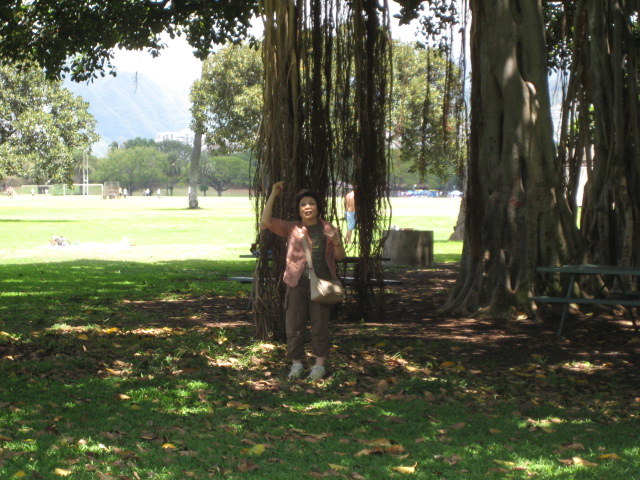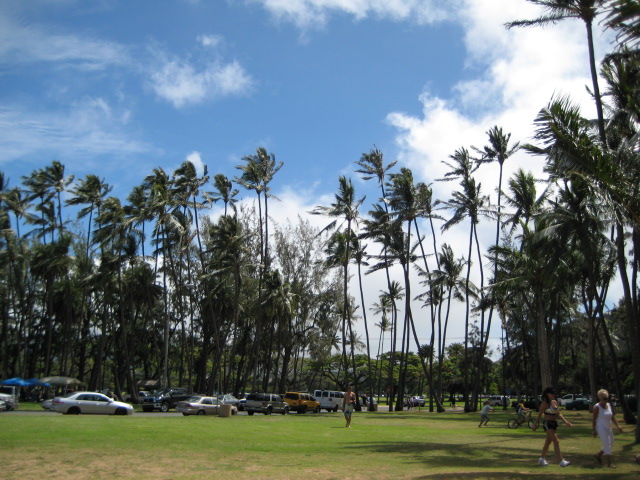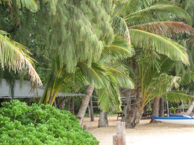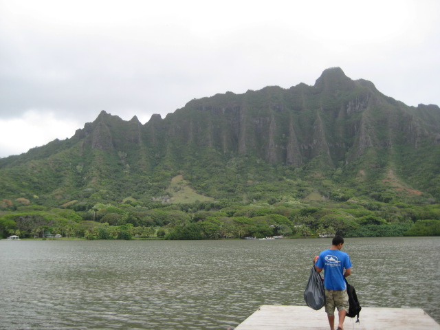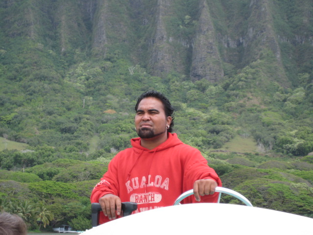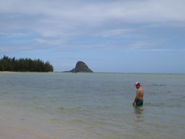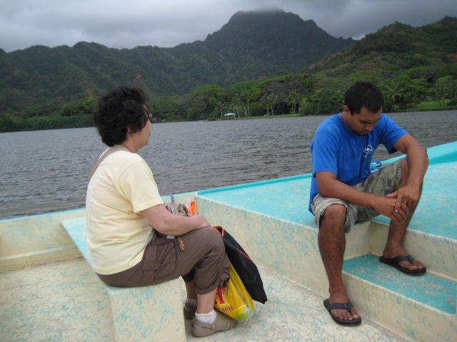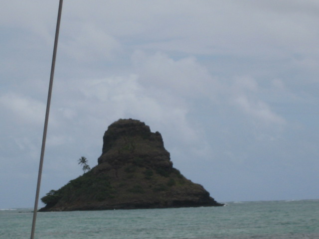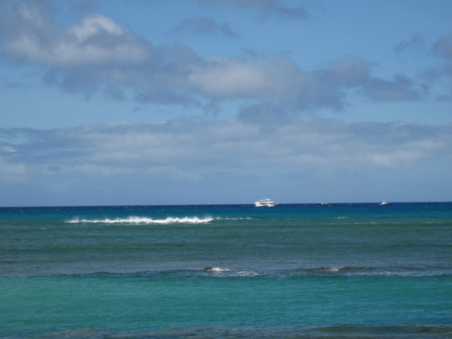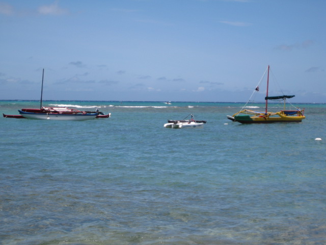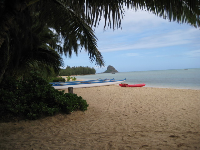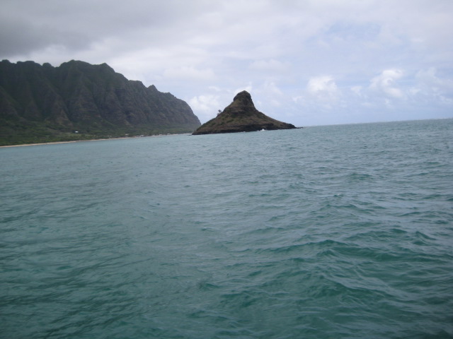 まあまあおいしかったような・・・。 妻は食べるものなかったと・・・。 ここです。プライベートビーチ!! 3月頃かな、ここで 左手にチャイナマンズハット見えるここで 「とんねるずのみなさんのおかげさんでした」で タカ&トシと4人でスパムむすびロシアンルーレット していたところです。 ここですよ、ここ。 その時の写真たしか携帯でアップしたのが そうなんです。ハンモックもありますし 卓球台や、バレーボールのコート、 カヤック、あと砂浜用のゴザ、 テーブルやベンチはもちろん バーベキューのコンロもあり もちろん、いちをトイレやシャワーはありますが・・・。 女性はどうか?と。それはまた今度写真後でね。 この手前フィッシュポンド船で越えてきてから 中州みたくなっているところに 少しですが低めの椰子の木や草が生えていて もちろん柔らかい土。満潮の時は どこまできてるのやら・・・。 でも砂浜は曇っていましたが ござで寝ると暖かく、この湾内に打ち寄せる波の音が ほんと心地よく、眠気を誘ってくれて α波沢山出てましたね。 こんな感じで草木が生い茂ってます。 なかなか絵になるでしょう!! 先月油絵にも描きました(^◇^) 水はここもかなり冷たく、この前ビデオ見たら 足だけ入っても悲鳴あげていました。 でも結局ここに、私は入水します。 次回はそんな話でも。 あとここで撮った動画もあるんで You Tubeにでも登録して貼れたら公開しますね。 他にもワイキキビーチの動画も 何個かあるしね。 まずはフイッシュポンドを 変な船で行きます。船の写真なくて・・・。 これは運転の方。 長椅子みたいなただ座るだけあるだけの船。 3分くらいで着きます。 うしろはクアロア山。 もうすでに双胴船上、だったりして・・・(^_^;) だんだんとチャイナマンズハットこと モコリイ島が近づいてきました。 アップで見ると 左のところわかります?椰子の木生えてます。 (写真はクリックすると 別窓ですが大きく見れますよ) そしてだんだんと沖に行くに従って 船も揺れてきました。(^◇^) 初めは真中に座って失敗でした。 この左側に座ればしっかり島、撮れたのに・・・。 そしてちょうど浜から見た裏側 向こうが山の位置、ここで記念撮影。 でもその前に一番揺れている時に 若い日本人の兄ちゃん達が船の一番前に 移動してジャンプを楽しみに行って 私の左の席何席か空いたんですよ。 その時ですよ、写真係の母は 私、妻、その一番右側に居たのに 私たちの前を横切って その一番揺れている時に 左サイドに移って行き うちら二人もびっくり、危ない!!と 叫んだのですが・・・・。 結局、まだ独り残っていた 若い兄ちゃんに倒れこむように 手すりにつかまりながら、後ろに のけ反りながらなんとか座りました。 まったく、わが母何する!? その兄ちゃん居なかったら、海に落ちてたぞ!! って、二人で怒って、お兄ちゃんにお礼をいいました。 まったく四捨五入したら70なのに なんと恐ろしいことをする母。(^_^;) そしてその左の席をゲットした母は モコリイ島激写、連写。 20枚くらい撮ってましたが ピンボケもあり、あと同じような写真も多く 使えたのは5枚くらい。 その命がけの写真を、どうぞ! このときかな記念撮影↓ まだ結構揺れていて 手すりにしがみついて 船長に写真撮ってもらいました。 揺れは上下に結構揺れて、ジャンプしているみたいで 楽しかったですよ。(^◇^) そしてこれが船長の愛犬、ちびちゃん!! 大揺れでも歩きまわっていましたよ。 かわいくて、何度も触りました。 この犬、ハワイスタイルにも出てましたね。 あとは母が更に撮ったカネオヘ湾からの 山々。 こんな感じです、カネオヘ湾クルーズ。 チャイナマンズハットの周り1周するかと 思っていたのですが反対側は浅瀬なのか ちょうど浜から見て裏まで行ったら また同じコース戻ってきました。 その帰り、エメラルドグリーンの海に ホヌが居たようなんですが 私たちにはわかりませんでした。 母が写真撮っているようだったのですが ちゃんとシャッターを切っていないのか 何もその写真なくて・・・・。 結構そういうのあります(^_^;) 私がビデオ撮っているそばで写真撮ってくれているんですが この前ビデオ見ると、こんなところで撮った写真 ないなぁ~ってね。まあいいんだけど。 でも今回見たく、あんな危ない真似は 二度としないでくれと、うちらからは 厳重注意、イエローカード出しました!! さて、カネオヘ湾クルーズは これ1回だけで終わってしまったね。(^_^;) 次回はいよいよ、昼食後 またここの浜、プライベートビーチに来て ガイドの兄ちゃん合わせて、4人だけの ゆったりビーチでーす!!お楽しみに。 このOPもあと2~3回かな? これ乗った双胴船です。 (写真クリックすると大きくなりーす!!) |