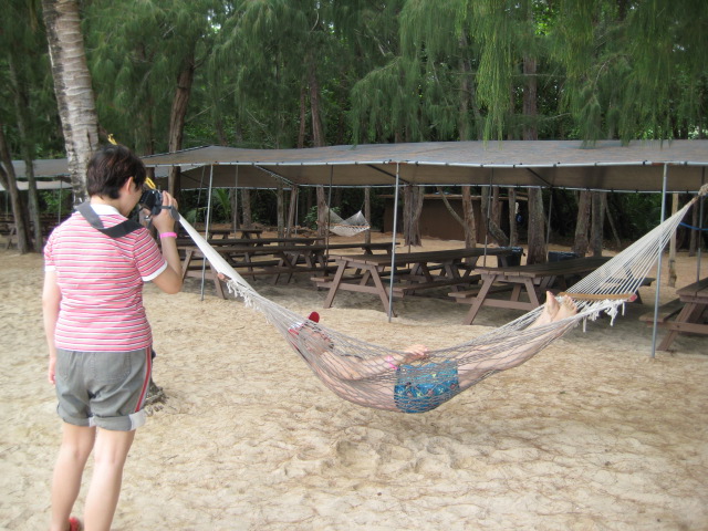 OPツアーも終わって、 4日目夕食は、2年前くらい前に OHANAマスターさんにおしえてもらった アラモアナSCマカイフードコートの あるお店に行きます。 その前に4日目、ワイキキは晴れていた みたいなので、ビーチへ!! 写真はクリックすると大きく見れます。 次のこのショット好きです。 クリックして見ました? 良かったら壁紙にでもどんじょ! 5日目はもっと晴れていい写真ありますから ちょっとだけ、期待しちゃっていいですよ。( ^)o(^ ) さてと、そろそろ トロリー、ピンクラインに乗りますか? アラモアナに到着。 ん?あれ?っと思っている方、 今年はまだハワイ行ってませんね。 そーなんです、この春オープンした 「ノード・ストローム?」でしたっけ? そこに停まります。アラモアナSCのワイキキ側かな? だからこの中を通ってアラモアナSCに向かいます。 中は、素通りでした(^_^;) さて、食べる前に長くなったので 本日はここまでに・・・・。 次回こそ、夕食と 夕食後のデザート&買い物で この4日目終了ですね。 もう行ってから3か月経つのに まだ書いてますが、写真がまだ 100枚以上保存しているので まだまだ続きそう・・・・。 話はそんなにないんだけど・・・。(^_^;) 手前がフイッシュポンドです。 奥がクアロア山。 (写真はクリックすると 大きくみれます、たぶん(^_^;) ) ビーチとの間に 草木が生い茂っていて こんな道が・・・・。 すんまへん、写真横で。 首、左に倒して見てちょ!(●^o^●) そしてここの右手に 前回話した、恐怖のシャワールームが・・・。 まずは看板! そしてこれがシャワールーム?!! きゃあー!!ってね。 これ以上は近づかなかったですが 中見てみれば良かったかな?(●^o^●) だから、女性はここで 泳ぐのはどうかな?? それともうひとつ、 船乗り場の右側に あれは?もしや・・・ そーです、簡易トイレです。 しかもこんなフィッシュポンドの端に・・・。 恐いっちゅーの。 排泄物は、フィッシュポンドの餌?? そんなわけないか、お昼に 下品な話ですいません・・・・。(^_^;) これ桟橋の近くのフィッシュポンド。 ガイドの兄さん、パン屑投げたら ポコポコ魚、食べには あまり来てなかったかな?模型が展示してましたが・・・・。 山肌のドアップ、彫りが深い!! これです、フィッシュポンド移動する船。 これで全て終了ですね。 プライベートビーチは 午後2時半頃には後にしたので 1時間半くらいですか、居たのは。 ビジターセンター戻って アンケート書いてバスに乗ったのが 15時15分くらい? 集合時間間違って遅れて来た 日本人のせいで出発遅れたけど・・・・。 帰りは渋滞の時間とかにつかまって うちらのホテルは最後だったので 16時半位に着きました。 途中、ハレクラニとかの狭い路地で ナイスな運転のドライバーに関心した私は ホテル着いて降りるとき 「マハロ、ナイス、ドライビング!!」って 調子に乗って言ったら、ドライバーさんも 「サンキュー!」と笑顔で言ってくれました。 本当に最後まで、最高でナイスな クアロアランチ1日OPツアーでした。 気になる料金ですが、ひとり 115~118ドルくらいだったと思います。 前にも話しましたが、半日は85ドルくらいです。 みなさんも良かったら次のオアフでは ぜひ検討してみてください。 裏オアフを体験出来るのは必至!! さて、OPツアーはこれで終わりましたが まだまだ旅行記は4日目夕方、 ディナーに行きます。 次回からはまたいつもの旅行記の カテゴリーに戻って続きを書いて行きますので 5泊7日の旅はまだまだ続きまーす!!(^◇^) 午後はこの双胴船動いてなくて そのうちどっか帰って行きましたね。 やっぱ半日ツアーの人が大半のようで。 半日は75~85ドルくらいだったような・・・。 沖にも島みたいな・・・・。 カネオヘ湾の東側かな・・・。 そして入水しちゃいました。 そりゃあ、そりゃあ冷たくて 漏らしてしまいましたよ。何が?って。(^_^;) 陽も出てないのに、いつもの帽子かぶってます。 OH!これは!!シャッターチャンス?? いえいえ、椰子の実撮ってるだけです。 そして念願のハンモック初体験!! まずは妻から!! そして私、ハンモックの沈み具合が・・・ 砂に付きそうですが・・・。 なんとか切れませんでしたよ!!(^◇^) そのあと母も乗ったのですが、それは私が正面に近付いて 回って写真撮ったのに うちら二人のは全部、こんな離れた所から うちらに顔見えるように横向けとか言って 撮ってました。よーく考えたら もうちょっと近づいて撮ってくれれば良かったのに・・・。 これもほんと結構絵になりますよねぇ・・・。 この後ベンチのところで 他にガイドの兄ちゃんは奥で 一人バレーボールやっていたので その隙に水着着替えちゃいました。ここで。(^◇^) そしてここの砂浜でゴザを敷いて デジカメの動画で撮ったのが 昨日もリンクした Youtubeの映像です。 またリンクしておきますので まだの人は良かったらどうぞ!! さて次回はいよいよ このクアロアアンチOPツアー編も 最終回かな? 「恐怖のシャワールーム編」で 