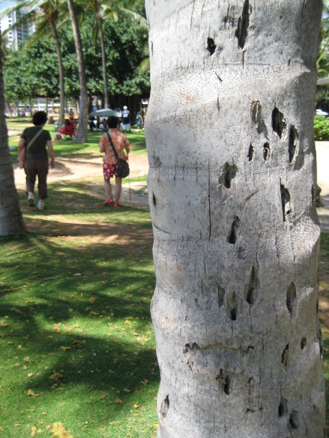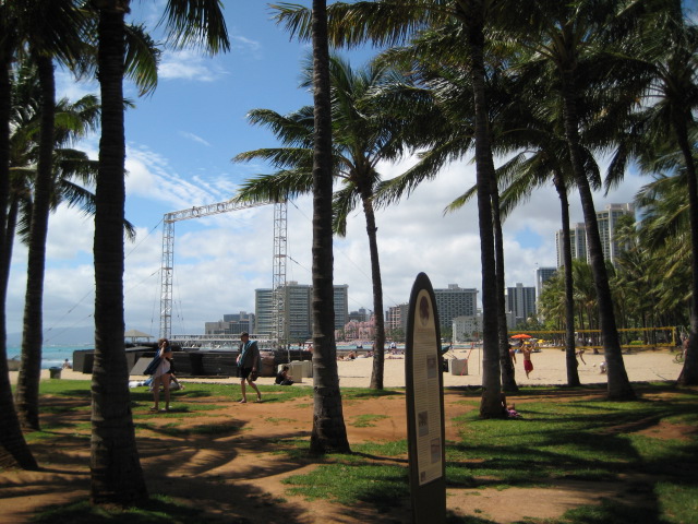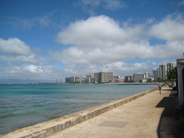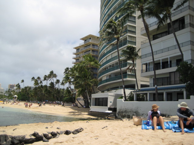 行きますか!! ここの前のビーチだったんだけど 入って良かったんだろうか??? 海は澄んでいてほんと綺麗です。 待った甲斐がありました。 あれ?ギャルは?? おっ、石が、乗ってみよう! 俺の足・・・・。 そしてここからワイキキを望む。 こんな感じでいいビーチですが?何か? ええー?ああ、ギャルでしたねぇ・・。 う~んどうしようかな?見たいです? みんなビキニでっせー!! ではお見せしましょう!! 写真はクリックするとエラーにならなければ 大きくなりますよ。 どうです?写ってます? 何?これだけかよ!って。 冗談ですよ、まだまだありまっせー!! どうですか?なんか同じ人かな? いやぁねぇ、なんか偶然フレームに 入っちゃってね。 なぁ~んて、嘘ですけど。 意識的に撮ってしまいました。(^_^;) ギャルのみなさん御協力感謝します。 カレンダーでも作っちゃいますか? おっと、これ以上書くと完全におっさんですね。 女性陣、ドン引きされそうなんで・・・・。 さて、次回はここから カピオラニ公園の方や ダイアモンドヘッド手前のテニスコートの方とか 散策しま~す。お楽しみに!!(^◇^) さて、散策しながら来てよーやく食事です。 どーです?この写真見てすぐわかる人は ハワイ通、ワイキキ通ですな。 そーです、「ハウ・トゥリー・ラナイ」。 写真はクリック出来れば大きくなりますが・・。 これは、俺かな?そして妻は ルルズからすっかりハマった、これ。 散々待たせて、食事の写真3枚しかないや。 これは、ニューオータニホテル玄関前の鯉。 そしてこれは海側のカイマナビーチ。 海パン履いて行ったけど、結局この海には またも足だけ・・・・。いつか浸かってみたいっすね。 ここからワイキキを望む・・・。 そして更に東側へ・・・。 ここ通るの大変でした。階段に水が来ていて 滑って・・・。(^_^;) ここにも最後の防波堤みたいな・・・所が。 これです、↓ この写真もかなり気に入っています。 どーです?いいでしょう!!(●^o^●) 絵になりますね、クリックして 大きく出れたら、壁紙にどんじょ! これもphotobackの本に入れましたね。 さて、次回はここの奥のビーチで戯れますが 男性陣乞ご期待!ギャルがわんさか、いまっせー!! お楽しみに!! 手前水族館から見たダイアモンドヘッド。 水族館は8ドルでしたっけ? 未だ行ったことなですが、この日の食後 妻の両親突然行くと言って行きました。 行く前から義母行きたいと言っていましたが この土壇場でそんなに行きたかったのかい?とね。 時間なくて行けてなかったですからね。 いいですねぇ、この海。 手前がエメラルドグリーン、奥が ハワイアンブルー、いいなぁ。 (写真クリックすると大きくなるかな? なんかエラーも多くて・・・) だいぶワイキキの東側でしょ。 義父です。そーです、ハワイで甚平きています。 前に、バリに行った時も着ていたそうです。 このあとカピオラニ公園の横歩いていたら 外人さんわざわざ車から降りてきて 「どこに売ってるの?そのシャツ?」 みたいなこと言われて、「いや、ジャパニーズ アロハシャツ?」みたいなこと言ったら 記念に写真撮ってくれと言われて 人気者になっていました。 あと、 義父だけ煙草吸うから、ホテル前で吸うところで 携帯用灰皿沢山持ってきたので いっしょに吸っている外人さんにプレゼントしたら 1回使ったら灰皿捨てようとするから 父も慌てたようで、だめだめ、プレゼントとね。 まあ、とかく60代は元気ですし 恐いもの知らずで、どんどん平気で 日本語でしゃべりまくりますね。( ^)o(^ ) 今度、来年は俺も甚平持っていて 目立っちゃおーっと。(^◇^) そして更に東に行くと 私の大好きな、椰子の木の林たち。 そして一番好きなビーチ、 そーです、ニューオタニホテル前の カイマナビーチ。 去年もこの2Hのライフセーバーの所で 写真撮ったのがプロフィールに使って 油絵でも描きましたね。 こんなかに、黒っぽ帽子、妻の母かな? これもいいですなぁ、壁紙にどんじょ! 右端手前の椰子の木入っていればもっと良かったのに。 さて今日もここまでで・・・(^_^;) 次回こそ、食事、そして更にその向こうの ビーチへ初めて行きます。 5日目最終日は、前日OPツアーで 疲れもあるので朝昼兼用の食事で ホテルロビーには10時集合。 それから、歩いてカイマナビーチの方へ。 このライフセーバーの小屋の人 帰国してから見た、アロハチャンネルに出てましたね。 今回も金属探知器で、暑い中ご苦労様です。 去年は夕方暗くなってからやっている人見ました。 そして、この空!! この辺も壁紙に使えそうですね、どんじょ! (クリックすると運が良ければ エラーにならず大きく表示します(^_^;) ) これもいいですなぁ、縦もなかなか絵になります。( ^)o(^ ) この辺、左手にカピオラニ公園の前の辺り散策しながら ワイキキ東端の去年も行った、例のお店へ! でも去年はそこで妻が最悪の体調だったので あまりいい思い出はないんだけどね・・・・。 右側奥が、ワイキキビーチですよ。 そしていつものベンチ