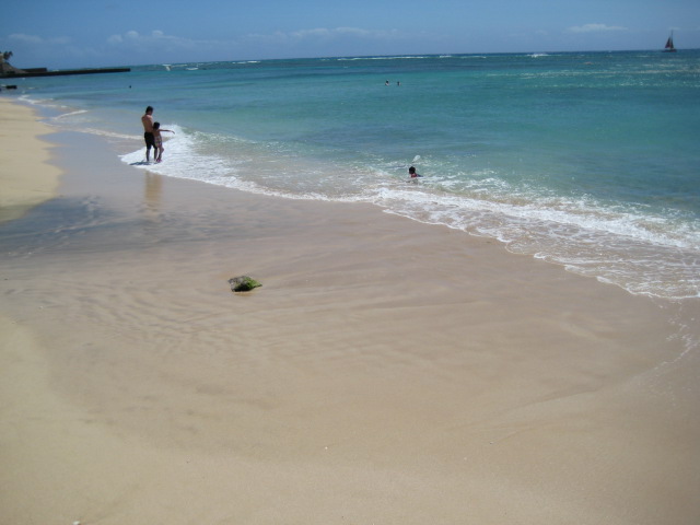 難しかったですね。 クヒオビーチの沖です。 ロコボーイ?少年かな? (写真はクリックすると 大きくなるはずです、たまにエラーあり) みんな朝まだ8時過ぎなのに天気もいいから ぞくぞくと沖に行きますね。 さっきの少年、うまく撮れました! 動画で撮れば良かったなぁ・・・。 ここのビーチは撮ったんだけど・・・。 (その動画は最終回かな?) さっきのおじさんも、さすが! ボディ・ボードですね。 こっちの方が上級者なんですよね。 ロングボードの方が初心者なんですよね。 まあほとんどかなづちな私には こんな深い所には絶対行けませんね。 ついにこれで名残惜しいビーチとも さよならですね。家族たちみんな 集合ホテル行ってもまだ独りで この風景を胸に納め、写真激写してましたね。 これが最後のビーチの写真ですね。 さっきの写真はあそこで撮ったものです。 あとはツアーデスクのあるホテルに とぼとぼゆっくりと、たまには ふりかえりながら、立ち止まったりして・・・。 わかりますよね、この気持ち・・・・。 ほんと書いているだけで、ほんのこの前のこと なんですけどね。泣けてきますわ。 ああ、やっぱ早くまた行きてぇ~!! またハワイ病発症しそうだ・・・。 ここ1ヶ月くらい治まっていたのに・・・。(^_^;) 次回はそのツアーデスクまでの 何気に撮った写真~そして いよいよ空港かな? ああ、旅行記終わってしまう・・・。 第51話でした。