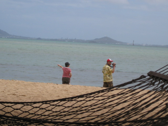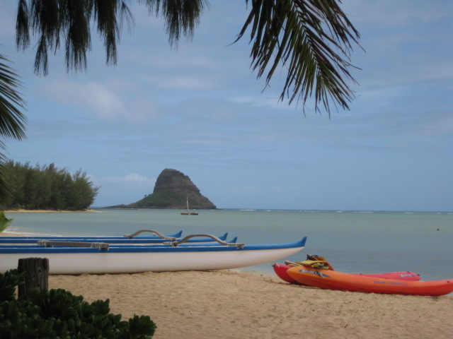まあまあおいしかったような・・・。 妻は食べるものなかったと・・・。 ここです。プライベートビーチ!! 3月頃かな、ここで 左手にチャイナマンズハット見えるここで 「とんねるずのみなさんのおかげさんでした」で タカ&トシと4人でスパムむすびロシアンルーレット していたところです。 ここですよ、ここ。 その時の写真たしか携帯でアップしたのが そうなんです。ハンモックもありますし 卓球台や、バレーボールのコート、 カヤック、あと砂浜用のゴザ、 テーブルやベンチはもちろん バーベキューのコンロもあり もちろん、いちをトイレやシャワーはありますが・・・。 女性はどうか?と。それはまた今度写真後でね。 この手前フィッシュポンド船で越えてきてから 中州みたくなっているところに 少しですが低めの椰子の木や草が生えていて もちろん柔らかい土。満潮の時は どこまできてるのやら・・・。 でも砂浜は曇っていましたが ござで寝ると暖かく、この湾内に打ち寄せる波の音が ほんと心地よく、眠気を誘ってくれて α波沢山出てましたね。 こんな感じで草木が生い茂ってます。 なかなか絵になるでしょう!! 先月油絵にも描きました(^◇^) 水はここもかなり冷たく、この前ビデオ見たら 足だけ入っても悲鳴あげていました。 でも結局ここに、私は入水します。 次回はそんな話でも。 あとここで撮った動画もあるんで You Tubeにでも登録して貼れたら公開しますね。 他にもワイキキビーチの動画も 何個かあるしね。 まずはフイッシュポンドを 変な船で行きます。船の写真なくて・・・。 これは運転の方。 長椅子みたいなただ座るだけあるだけの船。 3分くらいで着きます。 うしろはクアロア山。 もうすでに双胴船上、だったりして・・・(^_^;) だんだんとチャイナマンズハットこと モコリイ島が近づいてきました。 アップで見ると 左のところわかります?椰子の木生えてます。 (写真はクリックすると 別窓ですが大きく見れますよ) そしてだんだんと沖に行くに従って 船も揺れてきました。(^◇^) 初めは真中に座って失敗でした。 この左側に座ればしっかり島、撮れたのに・・・。 そしてちょうど浜から見た裏側 向こうが山の位置、ここで記念撮影。 でもその前に一番揺れている時に 若い日本人の兄ちゃん達が船の一番前に 移動してジャンプを楽しみに行って 私の左の席何席か空いたんですよ。 その時ですよ、写真係の母は 私、妻、その一番右側に居たのに 私たちの前を横切って その一番揺れている時に 左サイドに移って行き うちら二人もびっくり、危ない!!と 叫んだのですが・・・・。 結局、まだ独り残っていた 若い兄ちゃんに倒れこむように 手すりにつかまりながら、後ろに のけ反りながらなんとか座りました。 まったく、わが母何する!? その兄ちゃん居なかったら、海に落ちてたぞ!! って、二人で怒って、お兄ちゃんにお礼をいいました。 まったく四捨五入したら70なのに なんと恐ろしいことをする母。(^_^;) そしてその左の席をゲットした母は モコリイ島激写、連写。 20枚くらい撮ってましたが ピンボケもあり、あと同じような写真も多く 使えたのは5枚くらい。 その命がけの写真を、どうぞ! このときかな記念撮影↓ まだ結構揺れていて 手すりにしがみついて 船長に写真撮ってもらいました。 揺れは上下に結構揺れて、ジャンプしているみたいで 楽しかったですよ。(^◇^) そしてこれが船長の愛犬、ちびちゃん!! 大揺れでも歩きまわっていましたよ。 かわいくて、何度も触りました。 この犬、ハワイスタイルにも出てましたね。 あとは母が更に撮ったカネオヘ湾からの 山々。 こんな感じです、カネオヘ湾クルーズ。 チャイナマンズハットの周り1周するかと 思っていたのですが反対側は浅瀬なのか ちょうど浜から見て裏まで行ったら また同じコース戻ってきました。 その帰り、エメラルドグリーンの海に ホヌが居たようなんですが 私たちにはわかりませんでした。 母が写真撮っているようだったのですが ちゃんとシャッターを切っていないのか 何もその写真なくて・・・・。 結構そういうのあります(^_^;) 私がビデオ撮っているそばで写真撮ってくれているんですが この前ビデオ見ると、こんなところで撮った写真 ないなぁ~ってね。まあいいんだけど。 でも今回見たく、あんな危ない真似は 二度としないでくれと、うちらからは 厳重注意、イエローカード出しました!! さて、カネオヘ湾クルーズは これ1回だけで終わってしまったね。(^_^;) 次回はいよいよ、昼食後 またここの浜、プライベートビーチに来て ガイドの兄ちゃん合わせて、4人だけの ゆったりビーチでーす!!お楽しみに。 このOPもあと2~3回かな? これ乗った双胴船です。 (写真クリックすると大きくなりーす!!)