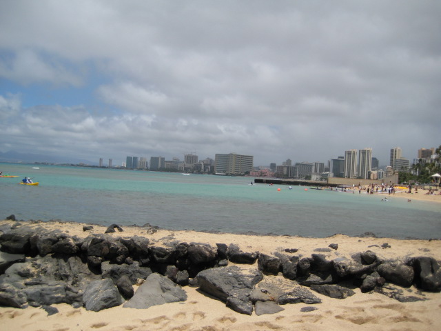 行きますか!! ここの前のビーチだったんだけど 入って良かったんだろうか??? 海は澄んでいてほんと綺麗です。 待った甲斐がありました。 あれ?ギャルは?? おっ、石が、乗ってみよう! 俺の足・・・・。 そしてここからワイキキを望む。 こんな感じでいいビーチですが?何か? ええー?ああ、ギャルでしたねぇ・・。 う~んどうしようかな?見たいです? みんなビキニでっせー!! ではお見せしましょう!! 写真はクリックするとエラーにならなければ 大きくなりますよ。 どうです?写ってます? 何?これだけかよ!って。 冗談ですよ、まだまだありまっせー!! どうですか?なんか同じ人かな? いやぁねぇ、なんか偶然フレームに 入っちゃってね。 なぁ~んて、嘘ですけど。 意識的に撮ってしまいました。(^_^;) ギャルのみなさん御協力感謝します。 カレンダーでも作っちゃいますか? おっと、これ以上書くと完全におっさんですね。 女性陣、ドン引きされそうなんで・・・・。 さて、次回はここから カピオラニ公園の方や ダイアモンドヘッド手前のテニスコートの方とか 散策しま~す。お楽しみに!!(^◇^) さて、散策しながら来てよーやく食事です。 どーです?この写真見てすぐわかる人は ハワイ通、ワイキキ通ですな。 そーです、「ハウ・トゥリー・ラナイ」。 写真はクリック出来れば大きくなりますが・・。 これは、俺かな?そして妻は ルルズからすっかりハマった、これ。 散々待たせて、食事の写真3枚しかないや。 これは、ニューオータニホテル玄関前の鯉。 そしてこれは海側のカイマナビーチ。 海パン履いて行ったけど、結局この海には またも足だけ・・・・。いつか浸かってみたいっすね。 ここからワイキキを望む・・・。 そして更に東側へ・・・。 ここ通るの大変でした。階段に水が来ていて 滑って・・・。(^_^;) ここにも最後の防波堤みたいな・・・所が。 これです、↓ この写真もかなり気に入っています。 どーです?いいでしょう!!(●^o^●) 絵になりますね、クリックして 大きく出れたら、壁紙にどんじょ! これもphotobackの本に入れましたね。 さて、次回はここの奥のビーチで戯れますが 男性陣乞ご期待!ギャルがわんさか、いまっせー!! お楽しみに!! 手前水族館から見たダイアモンドヘッド。 水族館は8ドルでしたっけ? 未だ行ったことなですが、この日の食後 妻の両親突然行くと言って行きました。 行く前から義母行きたいと言っていましたが この土壇場でそんなに行きたかったのかい?とね。 時間なくて行けてなかったですからね。 いいですねぇ、この海。 手前がエメラルドグリーン、奥が ハワイアンブルー、いいなぁ。 (写真クリックすると大きくなるかな? なんかエラーも多くて・・・) だいぶワイキキの東側でしょ。 義父です。そーです、ハワイで甚平きています。 前に、バリに行った時も着ていたそうです。 このあとカピオラニ公園の横歩いていたら 外人さんわざわざ車から降りてきて 「どこに売ってるの?そのシャツ?」 みたいなこと言われて、「いや、ジャパニーズ アロハシャツ?」みたいなこと言ったら 記念に写真撮ってくれと言われて 人気者になっていました。 あと、 義父だけ煙草吸うから、ホテル前で吸うところで 携帯用灰皿沢山持ってきたので いっしょに吸っている外人さんにプレゼントしたら 1回使ったら灰皿捨てようとするから 父も慌てたようで、だめだめ、プレゼントとね。 まあ、とかく60代は元気ですし 恐いもの知らずで、どんどん平気で 日本語でしゃべりまくりますね。( ^)o(^ ) 今度、来年は俺も甚平持っていて 目立っちゃおーっと。(^◇^) そして更に東に行くと 私の大好きな、椰子の木の林たち。 そして一番好きなビーチ、 そーです、ニューオタニホテル前の カイマナビーチ。 去年もこの2Hのライフセーバーの所で 写真撮ったのがプロフィールに使って 油絵でも描きましたね。 こんなかに、黒っぽ帽子、妻の母かな? これもいいですなぁ、壁紙にどんじょ! 右端手前の椰子の木入っていればもっと良かったのに。 さて今日もここまでで・・・(^_^;) 次回こそ、食事、そして更にその向こうの ビーチへ初めて行きます。 5日目最終日は、前日OPツアーで 疲れもあるので朝昼兼用の食事で ホテルロビーには10時集合。 それから、歩いてカイマナビーチの方へ。 このライフセーバーの小屋の人 帰国してから見た、アロハチャンネルに出てましたね。 今回も金属探知器で、暑い中ご苦労様です。 去年は夕方暗くなってからやっている人見ました。 そして、この空!! この辺も壁紙に使えそうですね、どんじょ! (クリックすると運が良ければ エラーにならず大きく表示します(^_^;) ) これもいいですなぁ、縦もなかなか絵になります。( ^)o(^ ) この辺、左手にカピオラニ公園の前の辺り散策しながら ワイキキ東端の去年も行った、例のお店へ! でも去年はそこで妻が最悪の体調だったので あまりいい思い出はないんだけどね・・・・。 右側奥が、ワイキキビーチですよ。 そしていつものベンチ